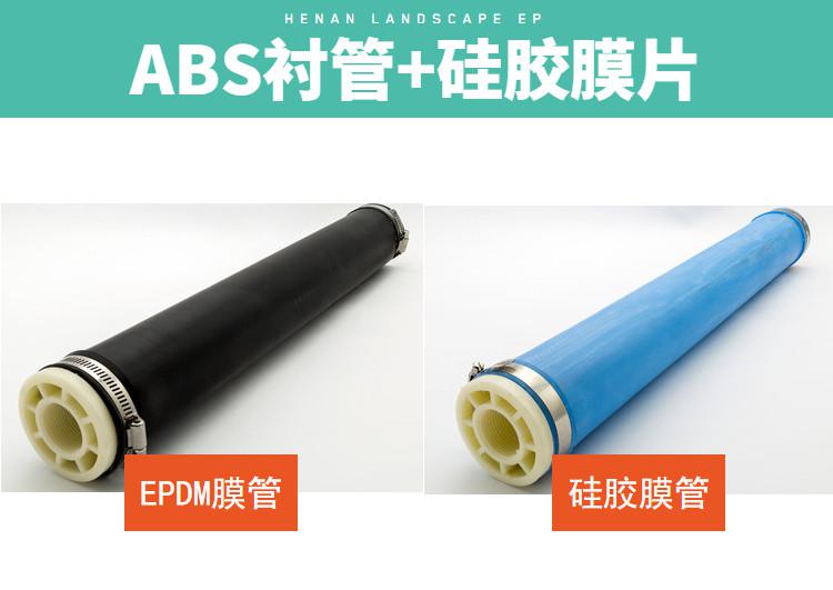 1.管式微孔曝气器膜管采用三元乙丙橡胶(EPDM)材料,具有耐热、耐臭氧、耐酸碱、化学稳定性好等特点,与一般橡胶膜相比,可大大提高其使用寿命。